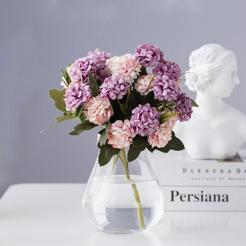 C-H002 زهور صناعية من الحرير البسيطة فو 10 رؤساء زهرة الكوبية باقة ورد لحفل الزفاف والديكورات المنزلية