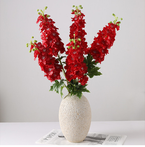 W-A0168 all'ingrosso mazzo artificiale fiori viola finto Delphinium fiore artificiale floccato tessuto fiore decorazione di nozze
